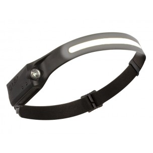 a mejor linterna LED para cabeza del mercado. Contenida en banda elástica de silicona negra con strap tamaño ajustable. Recargable con terminal USB, no usa pilas convencionales. Contiene 2 linternas LED: una banda frontal COB LED enfoque abierto + 1 luz XPE LED lateral enfoque concentrado.