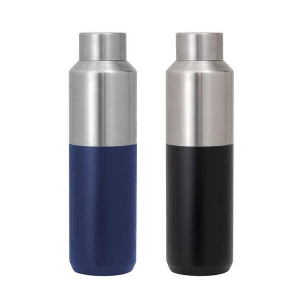 Aislamiento Superior para Bebidas Calientes y Frías. Botella doble pared, sellada al vacío. Interior de acero 304 y exterior de acero 201. Tapa a rosca de acero 201 con anillo de silicona. Pintura acabado mate en parte inferior. Mantiene por más de 12 hs la temperatura de las bebidas calientes y 24 hs de las bebidas frías.