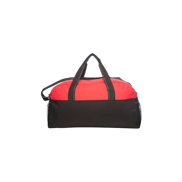 51 x 18,5 x 25 cm. Capacidad 23 litros aprox. Polyester 300d. Bolso con bolsillos de redes en los laterales. Dos manijas, correa y cierre principal con vivos blancos.
