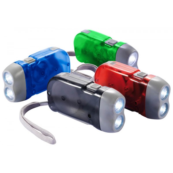 Linterna Dínamo con 2 luces LED. Cuerpo de color traslúcido frozen.