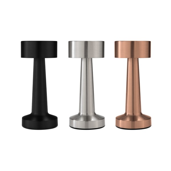 Tres modos de luz para iluminar tu espacio con estilo y versatilidad. Lámpara. Luz led. Botón táctil de encendido/apagado que regula la intensidad y cambia tres modos de luz (cálida, blanca y blanca cálida). Pintura con acabado mate (color negro) y con acabado brillante (plata y cobre). Batería de litio recargable. Conexión USB-C. Incluye cable de carga color negro.